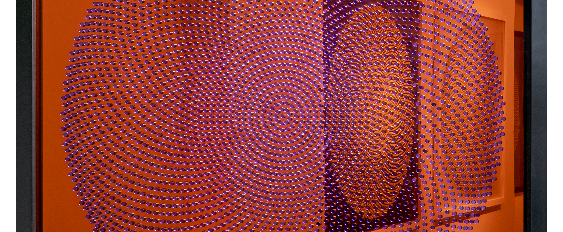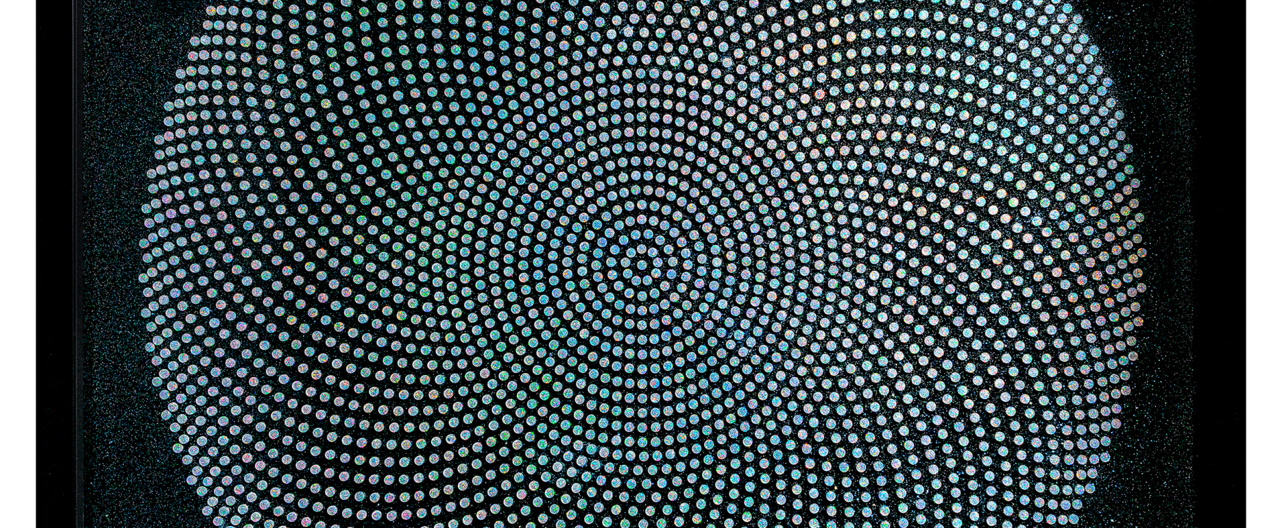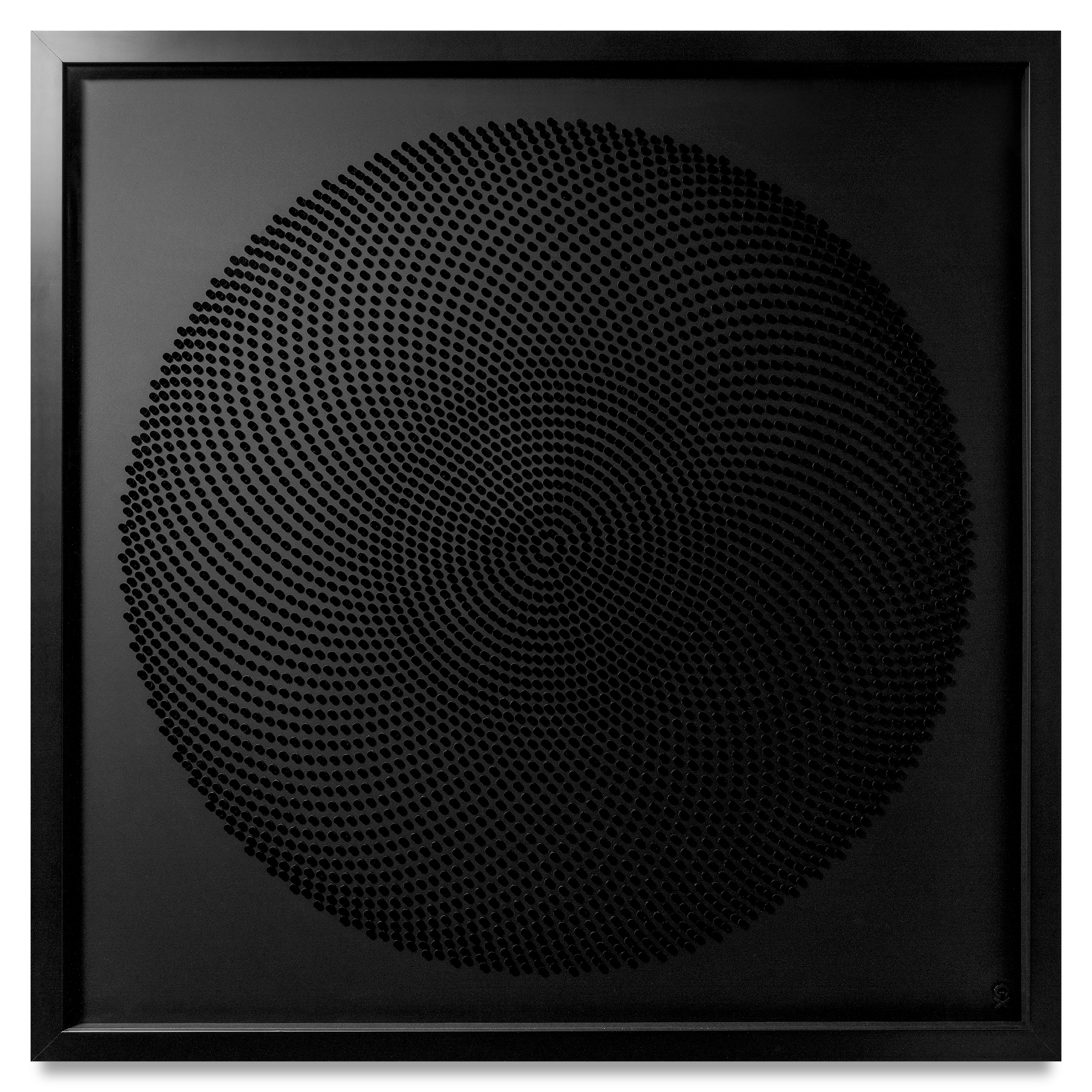 Black gloss acrylic discs set on black frosted acrylic sheet
