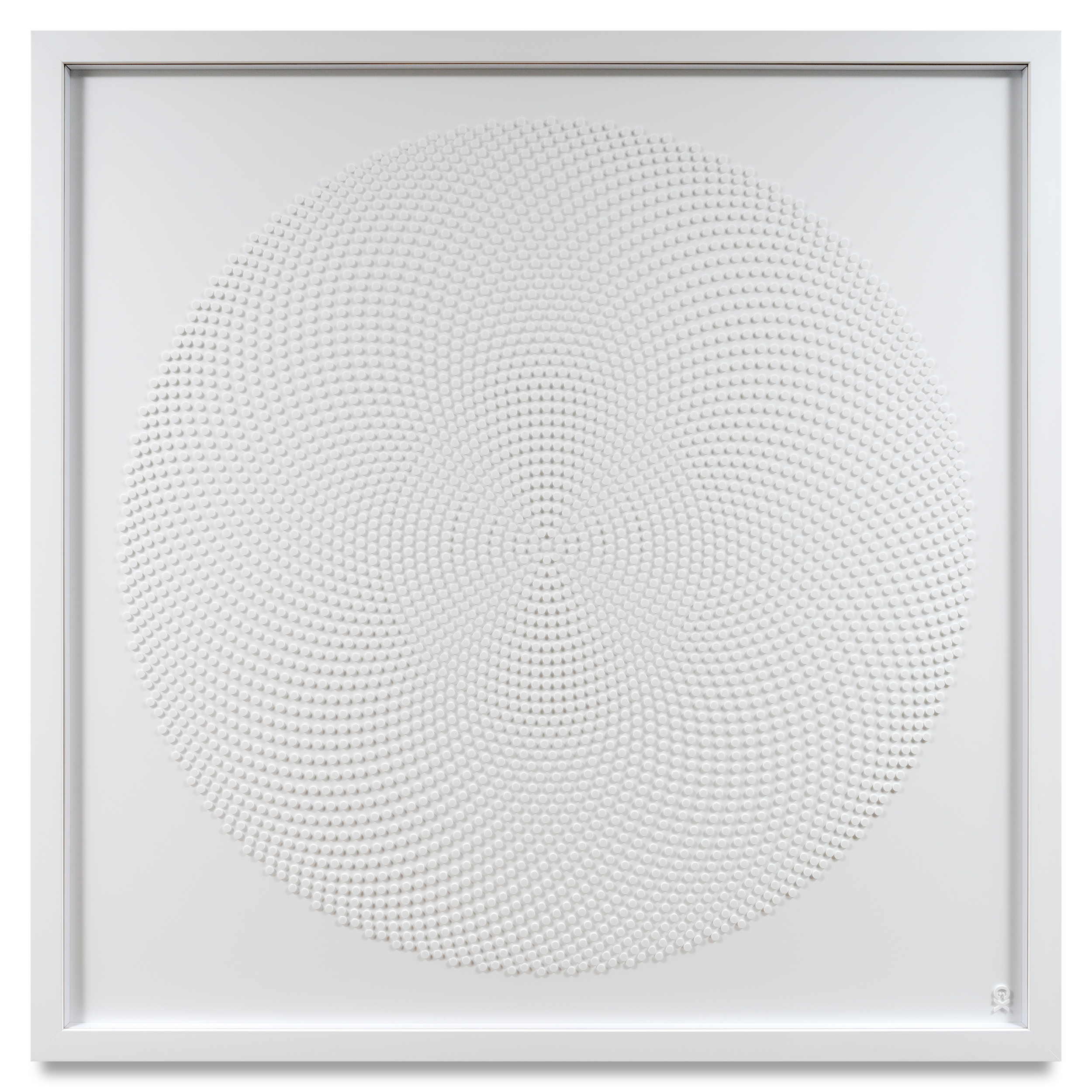 White gloss acrylic discs set on white frosted acrylic background