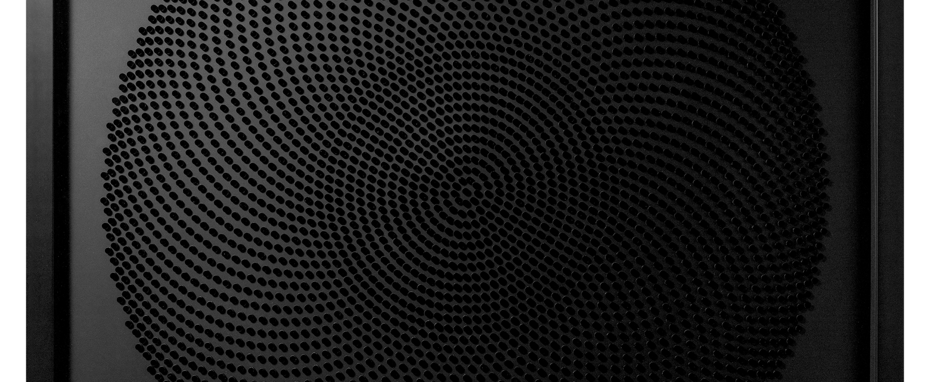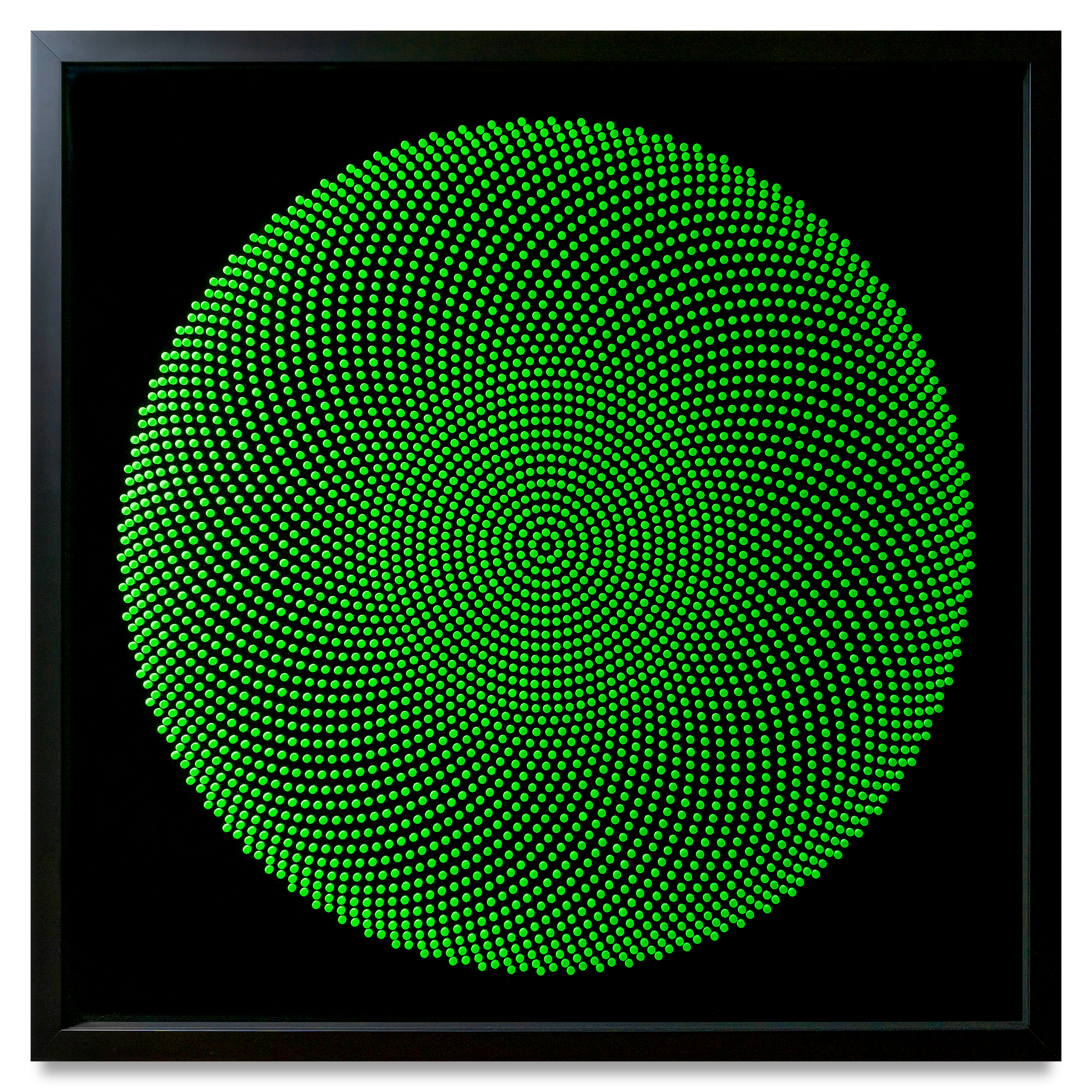 Fluorescent green acrylic discs set on black gloss acrylic background