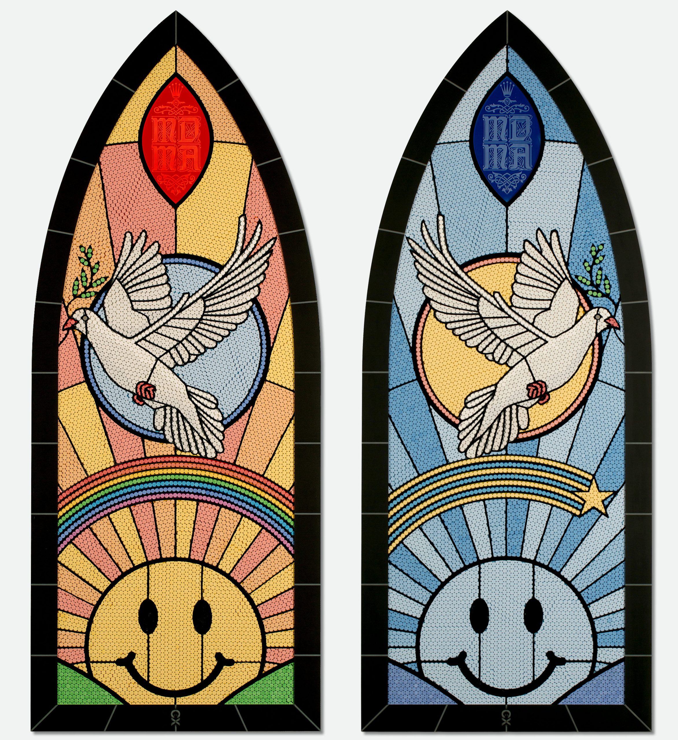 The dove is both emblematic of the search for peace and the harbinger of a new era. It was also a very popular ecstasy pill.