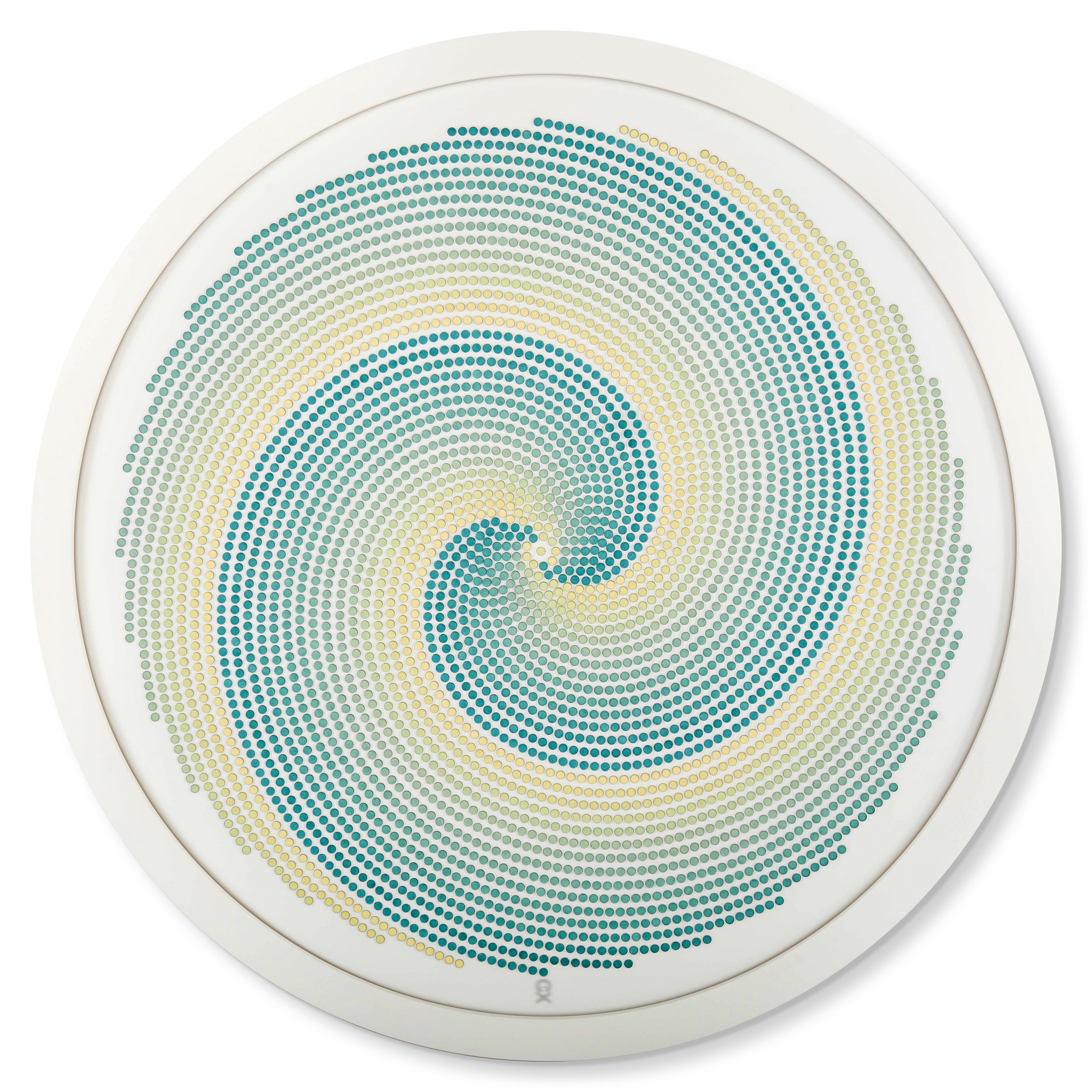 Matt white cast acrylic. Laser cut museum grade non-reflective, UV resistant cast acrylic. Glazed in museum grade non-reflective, UV resistant acrylic.