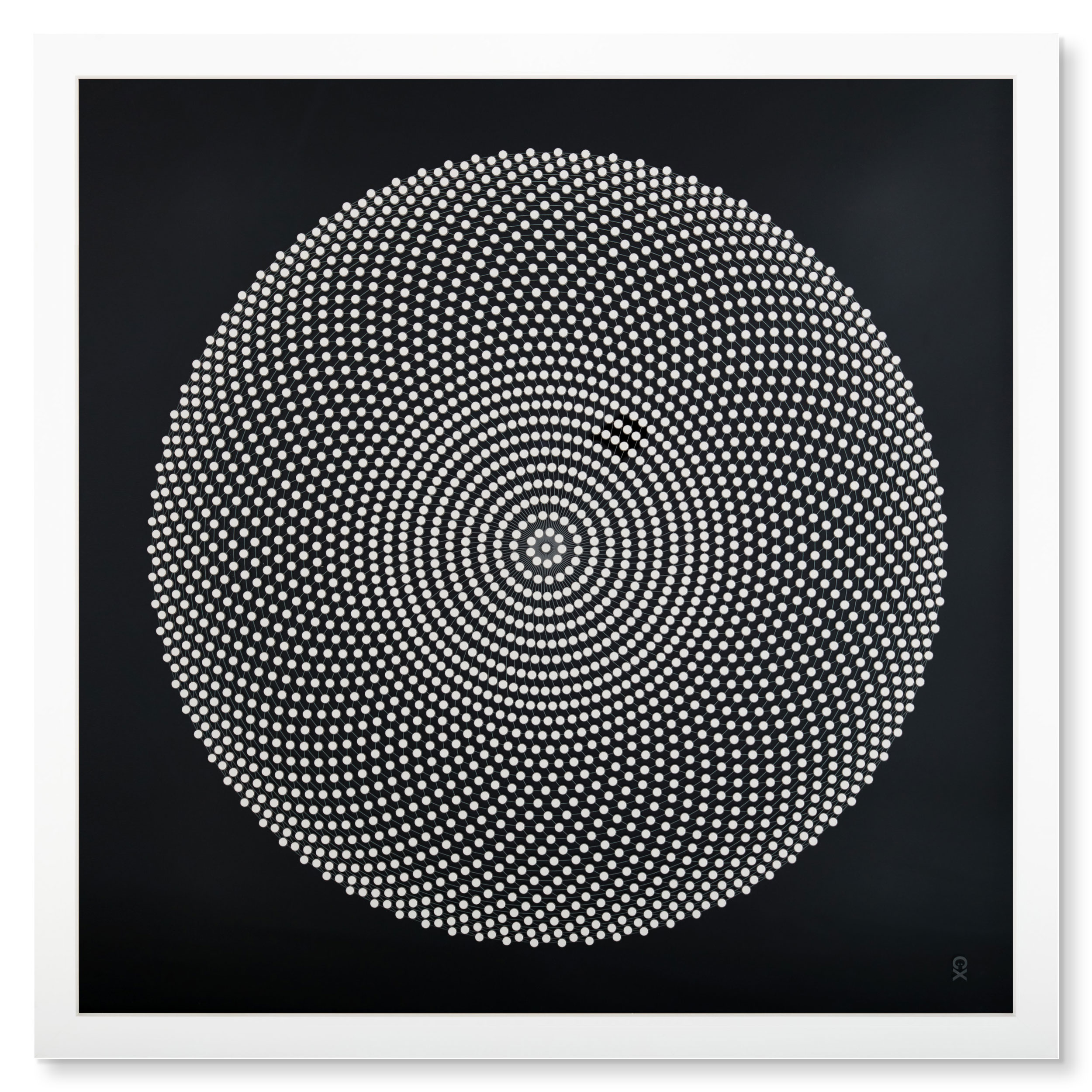 In this piece, the artist has created a unique pattern (one which he will return to in later works) that is complex in its simplicity. The pills are arranged in concentric circles that emanate from the centre but, as they become larger, the spacing creates both an illusion of form and a mandalaesque, hypnotic set of patterns that appear and disappear in the viewer’s eye.
